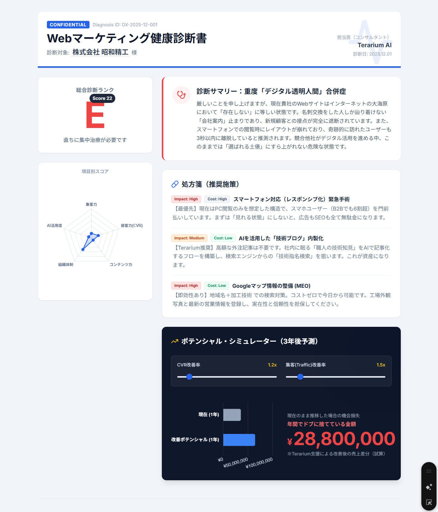 Webサイトの詳細診断レポートと競合比較分析・事業分析を