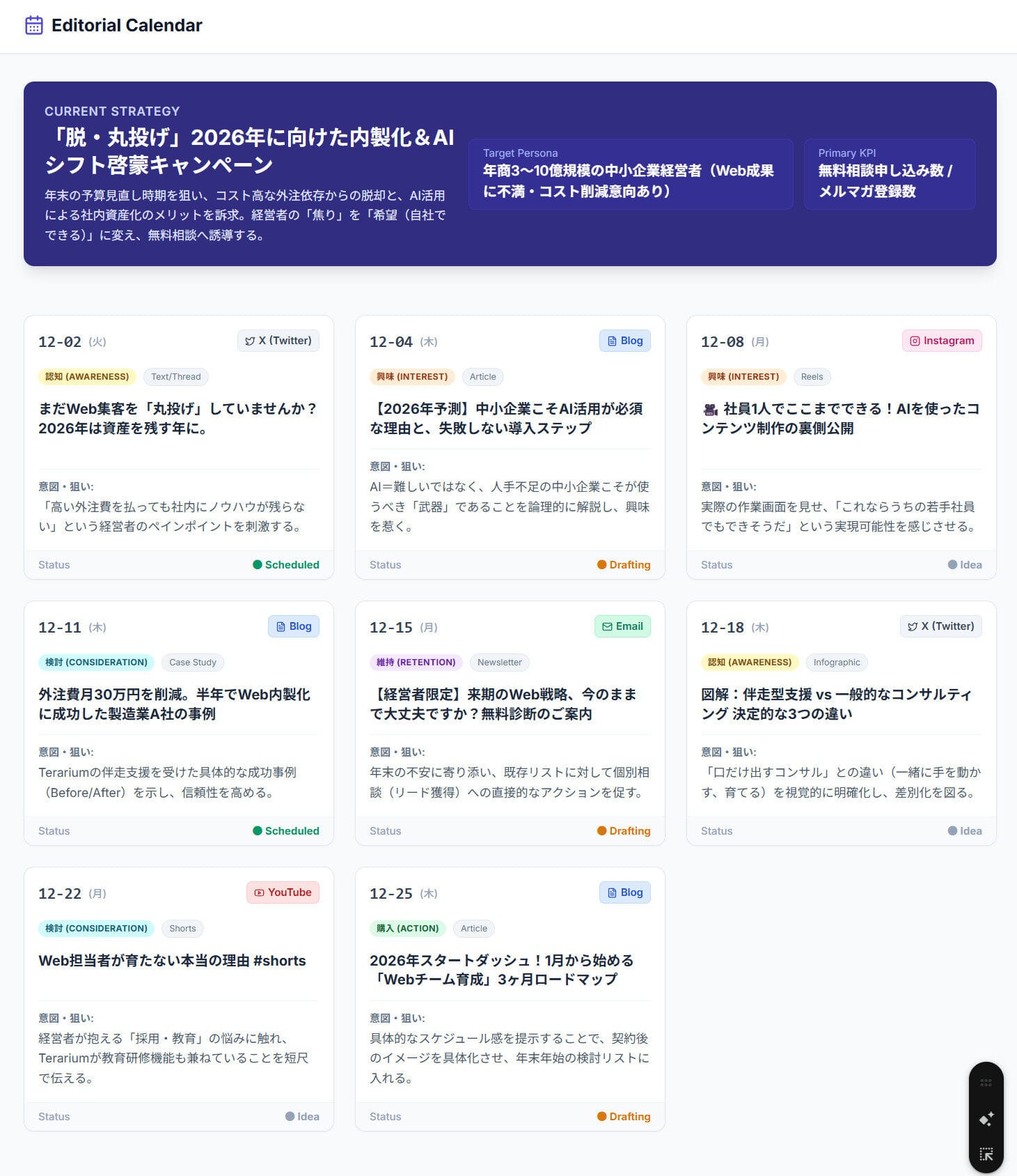 Terariumは「お手本実演」で思考プロセスを開示し、貴社の集客ノウハウを資産化。