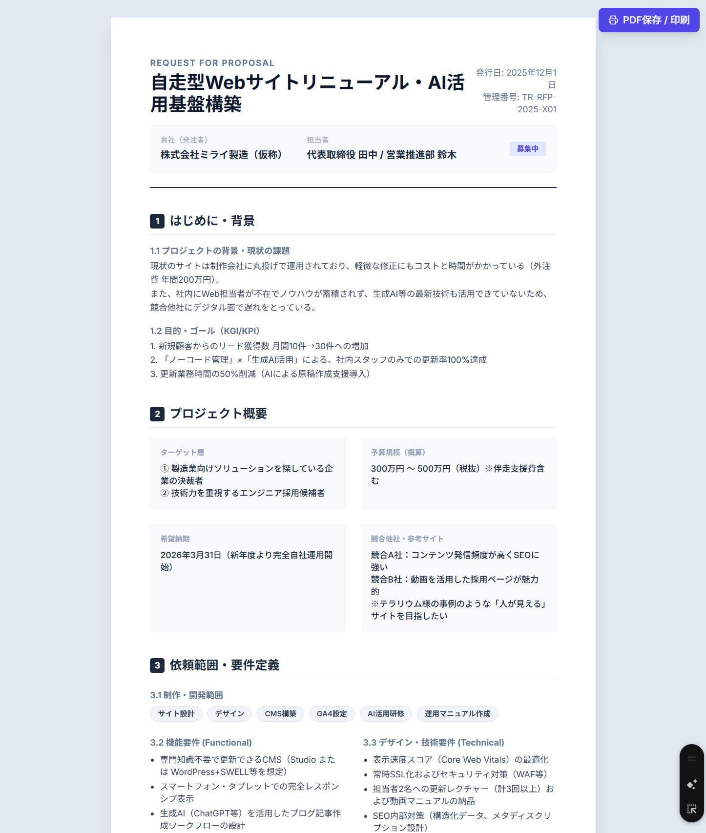 ※具体的・詳細に書くほど確度の高い資料が生成できます。
